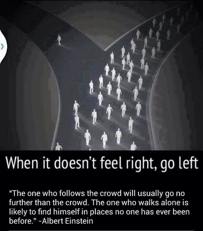 The one who follows the crowd will usually go no further than the crowd. Those who walk alone are likely to find themselves in places no one has ever been before.-Albert Einstein